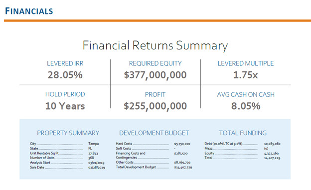 Time kills deals and lack of credibility can kill relationships. Our pitch book-creation tools make it easy for real estate acquisitions teams to share potential deals with their equity investors or investment committee as soon as they issue an LOI or purchase and sale agreement. This can grease the wheels on a syndication to ensure funding.